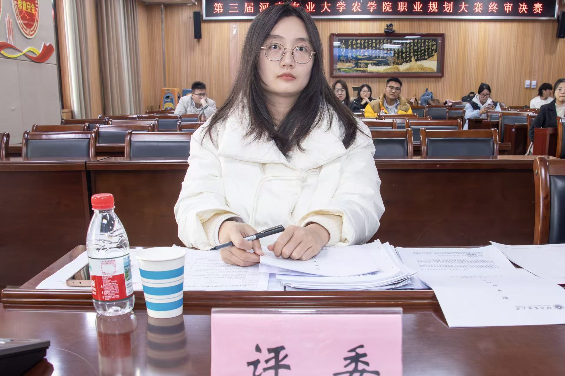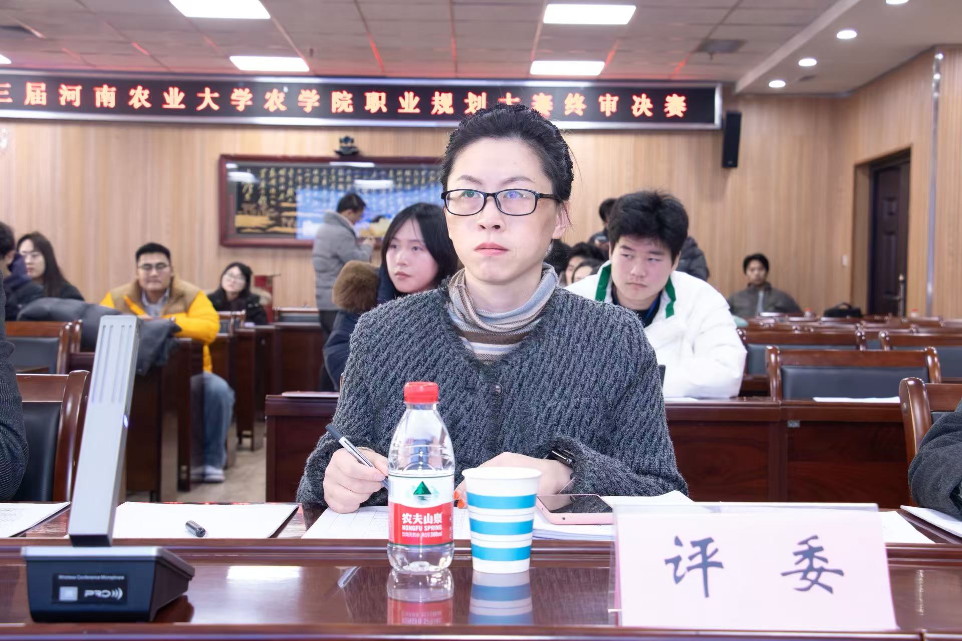 于龙子湖校区举办第三届职业规划大赛。院党委书记副书记王金铎、招⽣就业办公室李碧莹、院团委副书记唐朝、往届省赛金奖获得者胡心如担任评委,河南豫之星作物保护有限公司人事经理赫全红莅临本次比赛,23、24级学生代表现场观摩比赛。比赛由学生代表刘潇方主持。