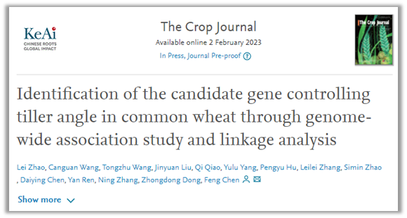 在小麦驯化和改良过程中,理想的株型是获得高产品种的主要选择标准。小麦分蘖角度是株型建成的重要因素,通过影响种植密度和群体光合效率进而影响和决定最终产量。目前在水稻中围绕分蘖角度遗传机制已开展大量工作,然而小麦中仍相对较少,进展有限,其遗传调控机制仍不清晰。围绕这一科学问题,团队进行长期探索,挖掘出多个小麦分蘖角度遗传调控位点,并进行深入研究。近日,我校陈锋教授团队在小麦株型调控分子机制研究方面取得重要研究进展,以“Identification of the candidate gene controlling tiller angle in common wheat through genome-wide association study and linkage analysis”为题在知名学术期刊 The Crop Journal(2021年影响因子4.647)在线发表研究论文。该研究对自然群体的全基因组关联分析和RIL群体的连锁分析,并结合BSR-Seq分析方法,对调控小麦分蘖角度的遗传调控位点进行鉴定,并对候选基因进行分析。该研究采用多种定位手段鉴定到一个新的小麦分蘖角度主效QTL,为克隆小麦分蘖角度调控基因、解析分蘖角度及株型形成的调控机制以及株型改良育种奠定基础。