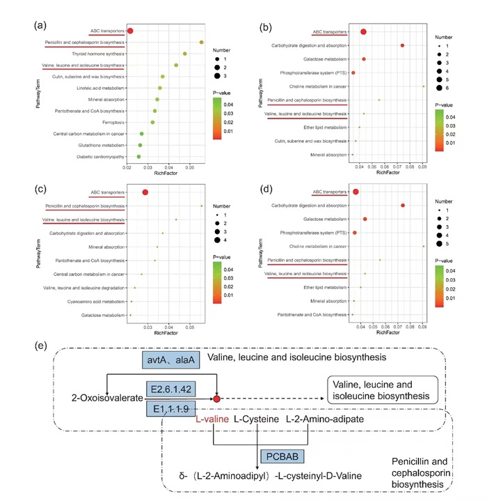 本研究首次揭示了高温、干旱和复合胁迫对夏玉米生物量、土壤微生物多样性和根际代谢物的影响。单一胁迫和复合胁迫不仅显著降低生物量,且微生物种类的相对丰度和土壤养分水平存在显著差异。代谢通路揭示了高温干旱处理和对照之间代谢模式的显著差异,表明根际代谢物在调节玉米根际活动响应高温干旱胁迫能力中的重要性。其中,发现多个通路聚焦的代谢物L-valine,可以作为代谢标记物,为提高玉米通过植物-根际微生物系统抵御气候变暖提供新的途径。同时,这种适应性调节与土壤微生物群落组成和代谢活动的动态变化有着密切联系,不仅为评估和制定未来气候变化的应对策略提供了见解,而且对提升黄淮海地区夏玉米积极响应气候变化具有重要的理论和实践意义。