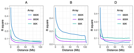 图 3 同一群体不同芯片 LD 衰减分析比较