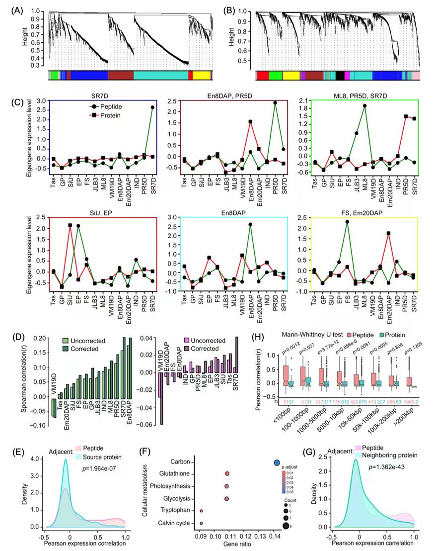 图2.玉米内源肽与源蛋白的全基因组共表达分析