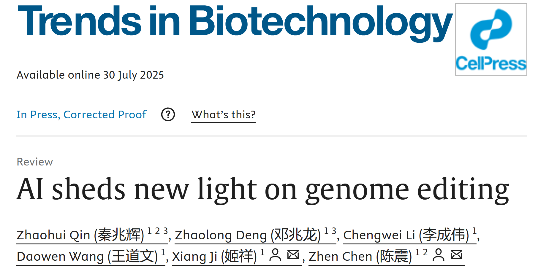 陈震与姬祥课题组联合发表题为“AI sheds new light on genome editing”的综述论文。该研究系统综述了深度学习技术在基因组编辑领域中的应用与发展。