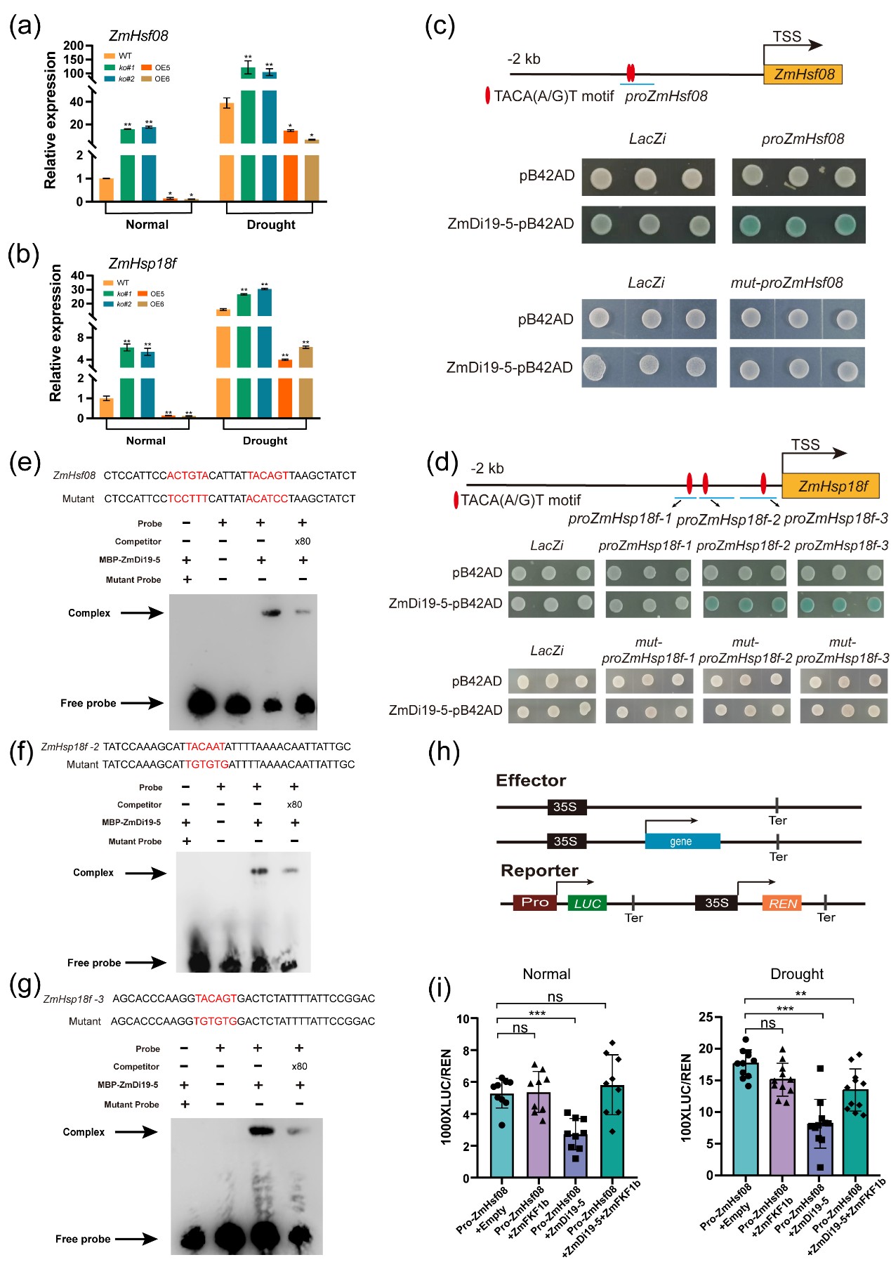 图4. ZmDi19-5直接抑制ZmHsf08的转录