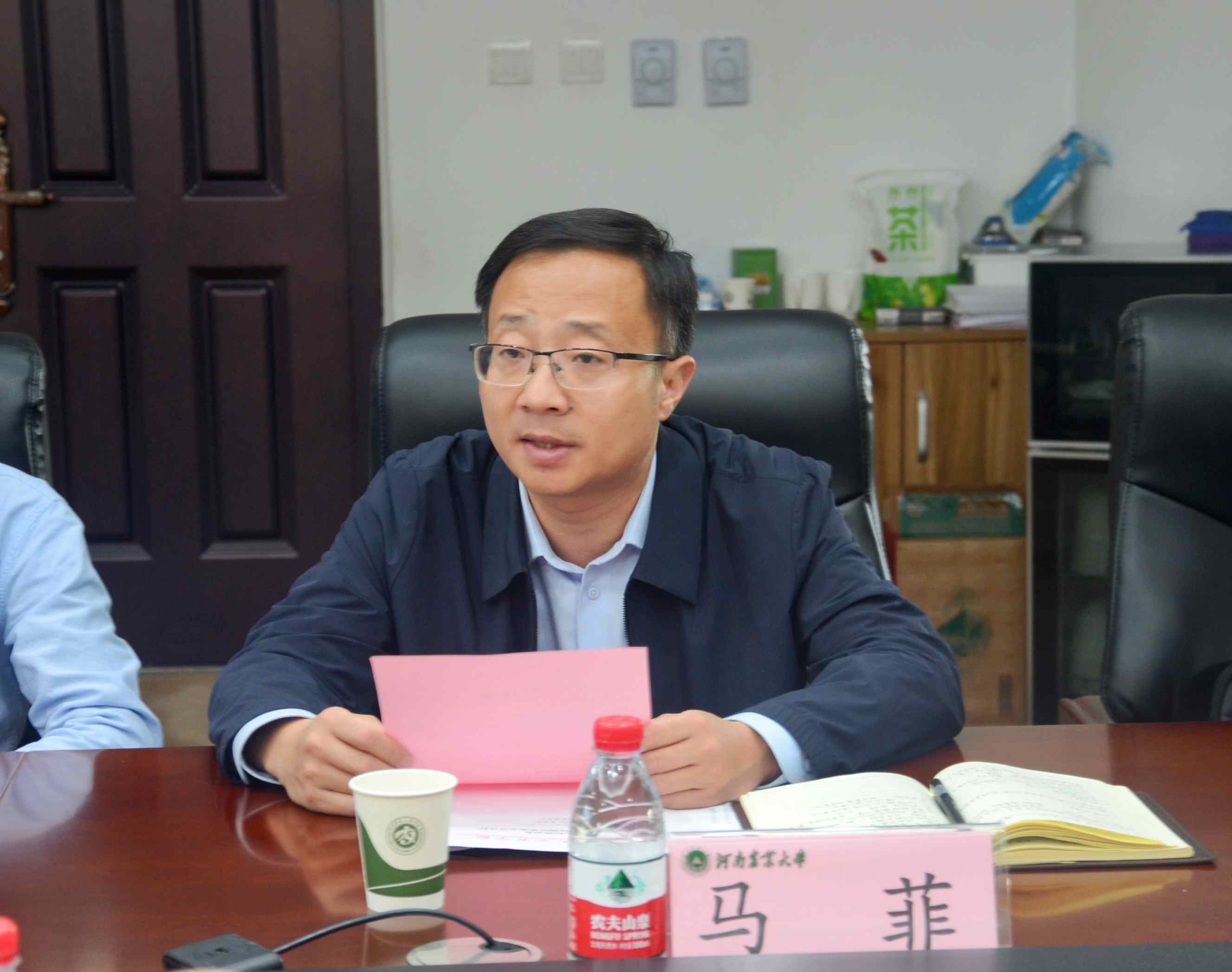 马菲首先对陈颖颖一行的到来表示热烈欢迎,随后就学院历史及发展现状进行了介绍,马菲表示,学院与新乡市历来就有着深厚的合作基础,目前学院积极入驻中原农谷、并以此为抓手持续推进神农种业学院建设,在此过程中得到了新乡市委市政府的大力帮助,本次陈颖颖副市长一行的到来可谓正逢其时,希望双方深入开展合作交流,以此次调研为契机,形成高效合作机制,集聚多方优势资源,共享发展机遇,共谋发展新篇。