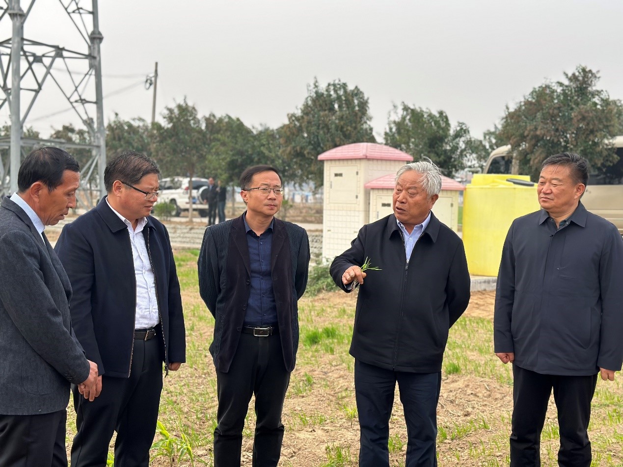 副院长殷贵鸿研究员、谢迎新研究员及院党政办公室副主任徐佳亮一行赴柘城县调研指导小麦生产并就校地合作事宜进行洽谈,柘城县县长余化敏、副县长董刘杰、副县长兼张桥镇党委书记林杨洋及相关政府职能部门、面粉企业代表、种植户代表陪同调研座谈。