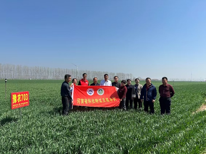 小麦新品种新技术舞阳试验示范基地,专家组详细查看了种植的豫农916、豫农186、豫农612、豫农521、豫农529、豫农523、豫农812、豫农703、豫农705等9个“豫农”系列小麦品种示范展示生长情况。专家组调研发现,各小麦示范品种肥水管理得当,病虫草害防治及时,当前长势良好,并对当地前期所做出的工作给予高度肯定。专家组强调,针对春季小麦生长发育特点和肥水需求规律,重点做好预防“倒春寒”和“春旱”工作,加强肥水管理和病虫害防治,提早做好预案;针对小麦后期生长发育特点和气候变化情况,重点做好预防小麦赤霉病、干热风和穗发芽工作,确保“一喷三防”措施及时落实到位。