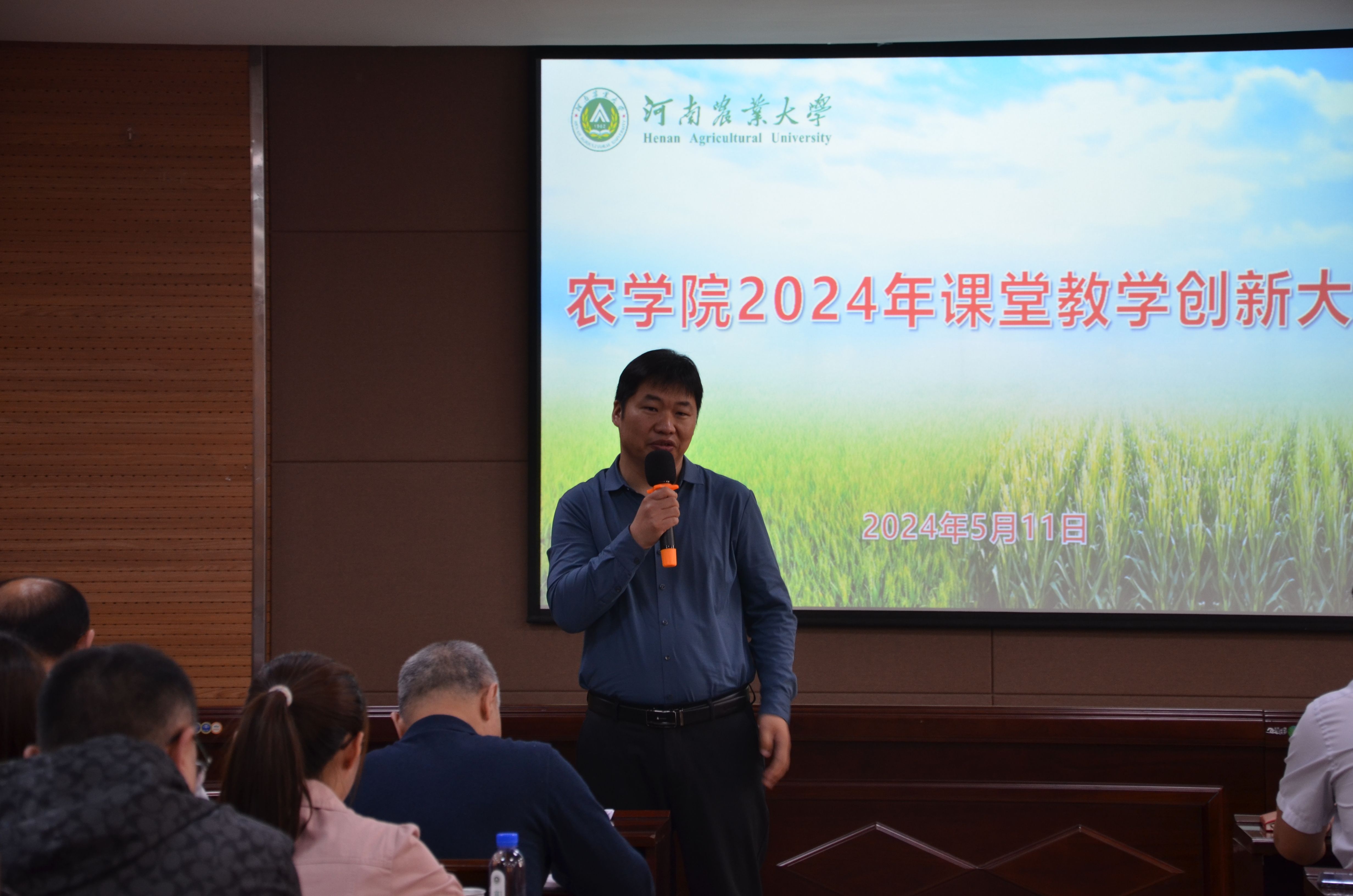 2024年度课堂教学创新大赛。特邀请教务处副处长王金铎,校教学督导赵会杰,院教学督导胡彦民、马宗斌、周苏玫、李连珍,河南省本科高校教师课堂教学创新大赛特等奖获得者食品科学技术学院教师李倩,各系主要负责人及学生代表担任比赛评委。院党委书记贾磊出席本次大赛,新进青年教师观摩比赛。大赛由副院长李浩川主持。