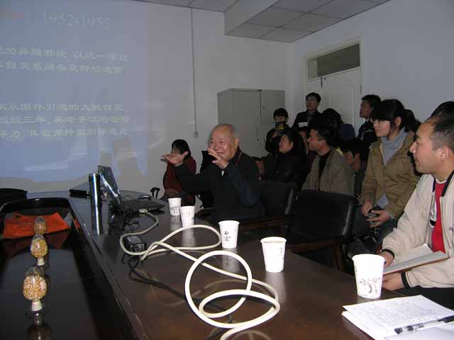 本科学子们做了题为“南北合作的历史印迹”的报告。作为吴(绍骙)先生的弟子,陈教授以自己的亲身经历向年轻的玉米学子们介绍了上世纪50年代初,吴老等老一辈玉米育种专家在特殊的历史条件下,克服种种困难开展新中国最早的玉米育种工作的史实;深入浅出地讲述了吴老首倡的玉米育种“异地培育”理论和方法以及玉米杂交育种手段的科学内涵和历史贡献。报告结束后,陈教授与学子们亲切交谈,向他们提出殷切的期望,并鼓励学子们认清自己的专业特长,在育种的广阔天地里辛勤耕耘,努力成才。