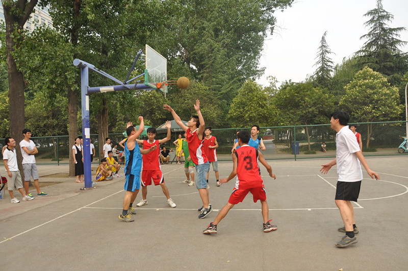 在校区西篮球场举行师生联谊篮球赛。院领导黄松、贾磊等,青年教师董中东、丁俊强、夏至、杜彦修等,院团委老师及2014届毕业生参加。