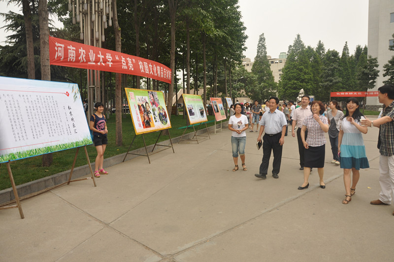 主办的弘农欢乐汇——“小麦进城”农耕文化图片展在工程楼西北侧举行。校党委常务副书记李少兰、校工会主席褚金海、校团委书记余磊、a片直播