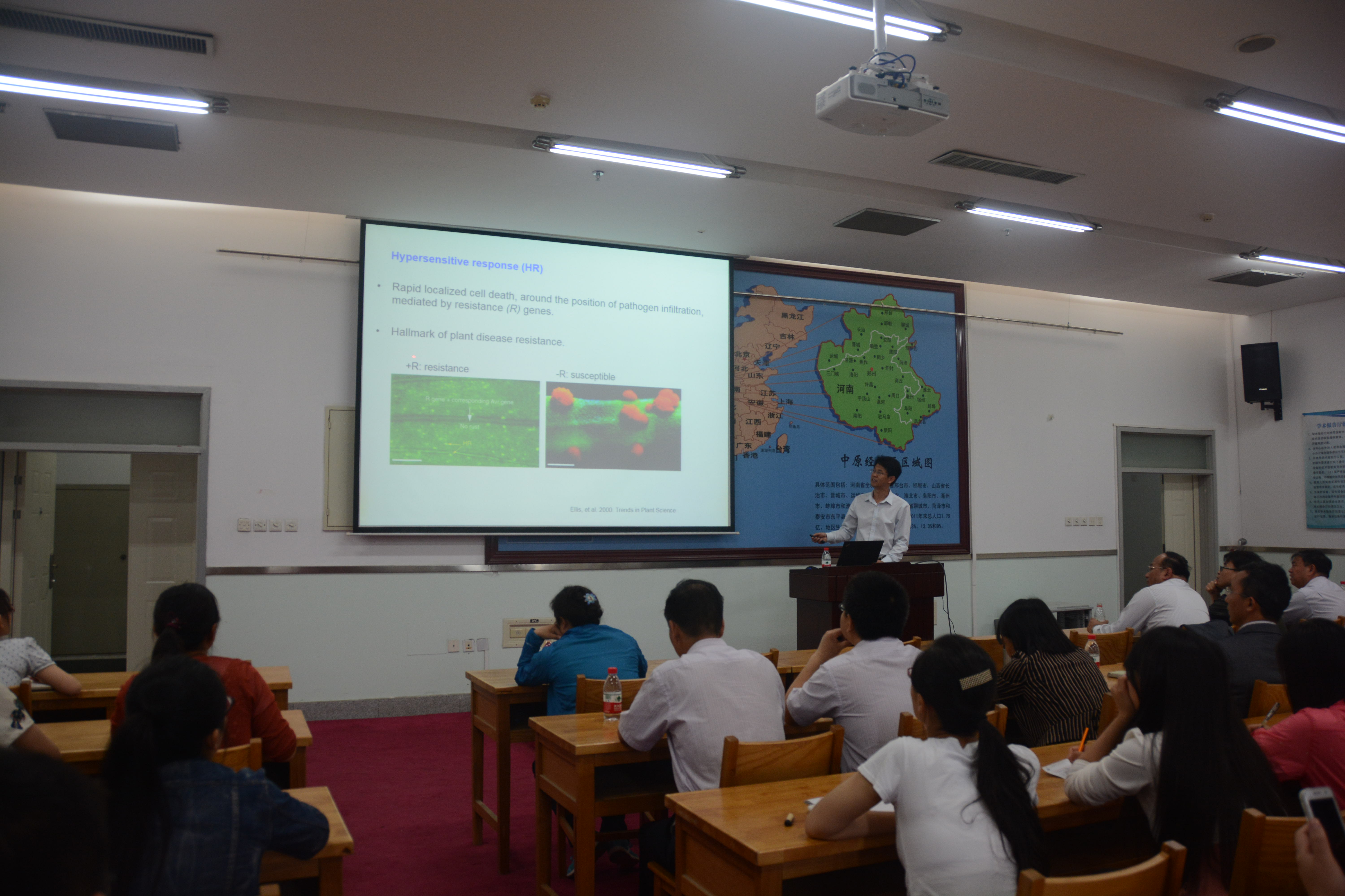 5月22日上午,美国北卡罗莱纳州立大学博士王官锋应邀在河南粮食作物协同创新中心学术报告厅为我校广大师生作了题为“玉米抗病基因Rp1-D21介导的超敏感反应(HR)的功能分析”的学术报告。a片直播