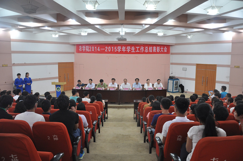 2014-2015学年学生工作总结表彰大会在校大礼堂三百人报告厅隆重召开。院党委书记陈书章、院长林同保、院党委副书记贾磊、副院长杨青华、赵全志、杨百黎,院办公室、院团委老师及本科生、研究生代表近300人参加了大会。会议由院党委副书记贾磊主持。