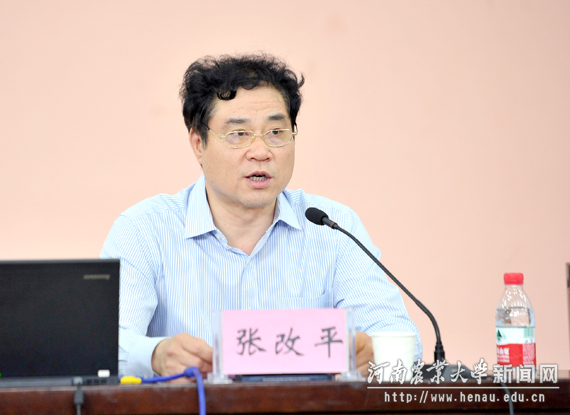 张改平在开班仪式上致辞。他代表学校向吴孔明等专家、学者莅校授课表示衷心感谢,向来自全国十所大学的同学们表示热烈欢迎。张改平介绍了学校“2011计划”的建设、发展情况,他指出,中心已经初步成为优秀人才汇集的高地、深化教学改革的试验区、政府发展粮食生产的智囊团和行业科技成果的扩散源。