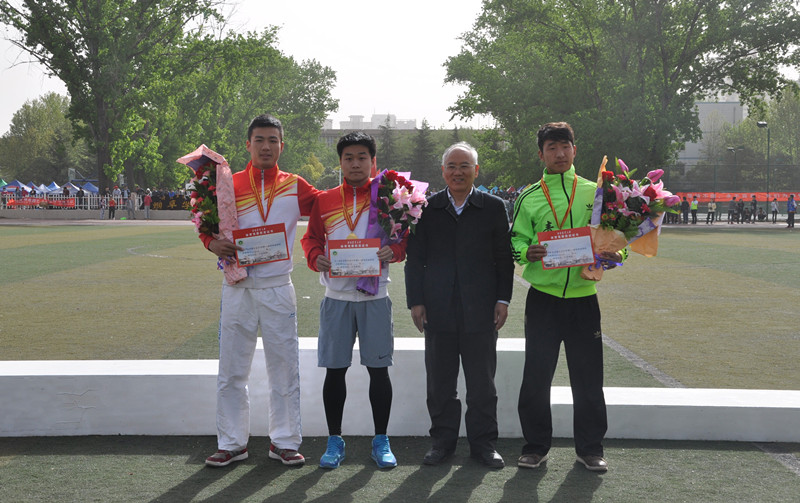 吕传威(右一)、韩贝(左一)荣获男子3000米第二、第三名