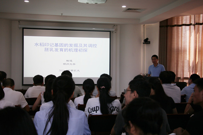 师生分别做 “小RNA在多倍体杂交和种间杂交障碍中的作用”和“水稻印记基因的发掘及其调控胚乳发育的功能研究”的学术报告。a片直播