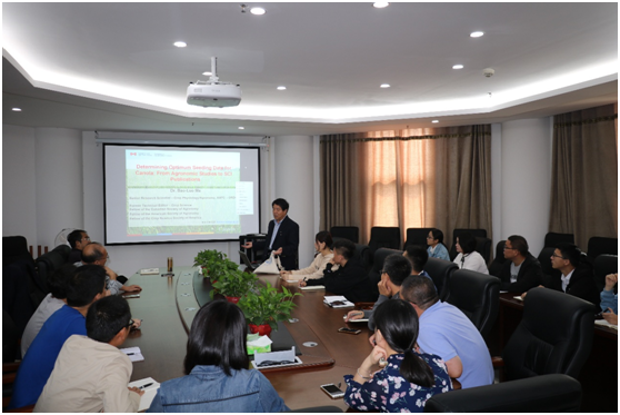 教师、研究生作了题为“Determining Optimum Seeding Date for Canola:From Agronomic Studies to SCI Publication”的学术报告,并就田间试验设计、数据整理分析、SCI论文写作及大田作物栽培生理研究热点等问题与师生进行了广泛而深入的交流和探讨。报告会由a片直播