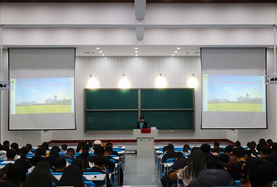 在龙子湖校区教学楼大教室二召开新生专题报告会,会议由院党委副书记吴旭静主讲,辅导员李盼以及2018级全体新生与会。