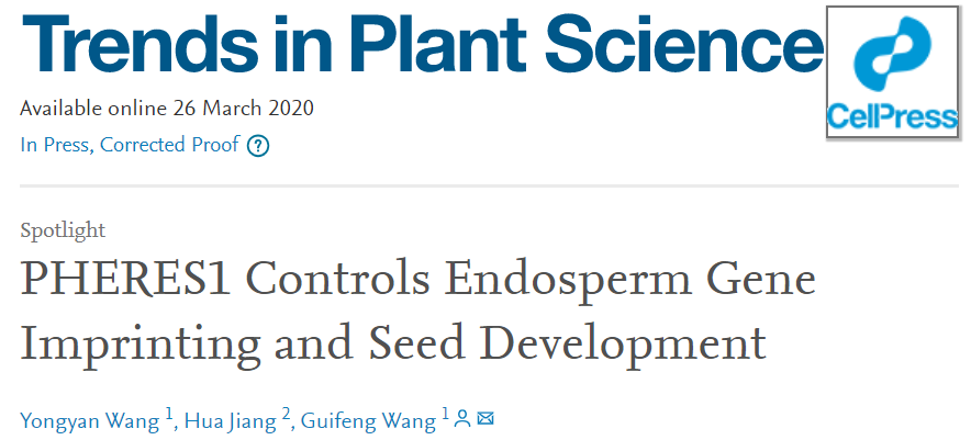 王桂凤课题组应邀在Trends in Plant Science杂志(影响因子为14)发表题为《PHERES1 Controls Endosperm Gene Imprinting and Seed Development》的焦点评论文章。