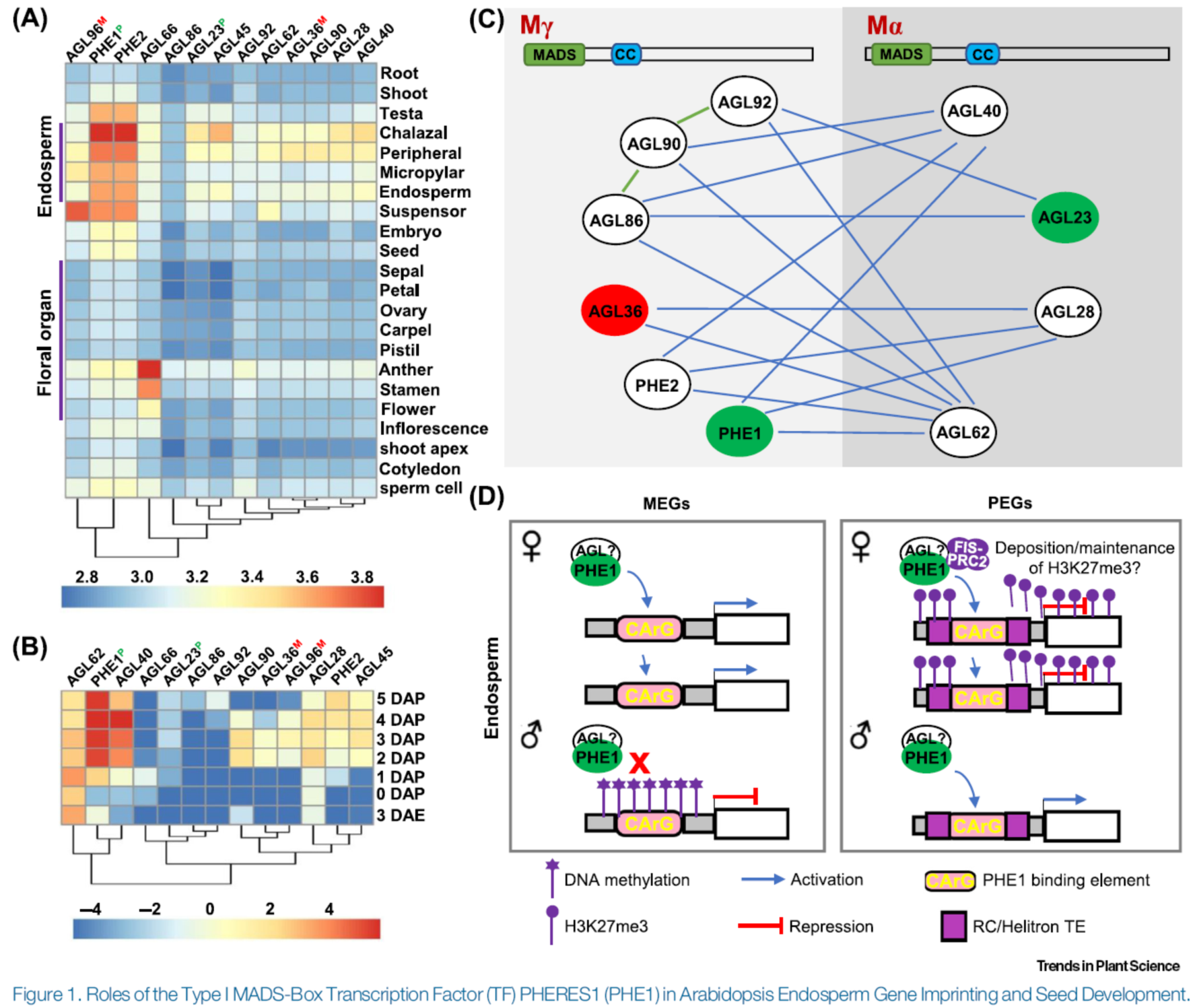 [2] Batista, R.A. et al. (2019) The MADS-box transcription factor PHERES1 controls imprinting in the endosperm by binding to domesticated transposons. eLife 8, e50541.