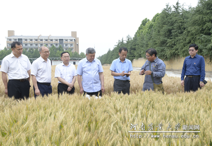 全国“两会”成功召开,许昌校区小麦丰收在望、党员示范田硕果累累。5月24日,校党委书记魏蒙关,副校长尚富德、林同保一行赴许昌校区调研指导小麦科研工作。省农业农村厅种子管理站站长马运粮陪同调研小麦种子选育工作,学校党委办公室、党委宣传部、许昌校区管理中心和a片直播