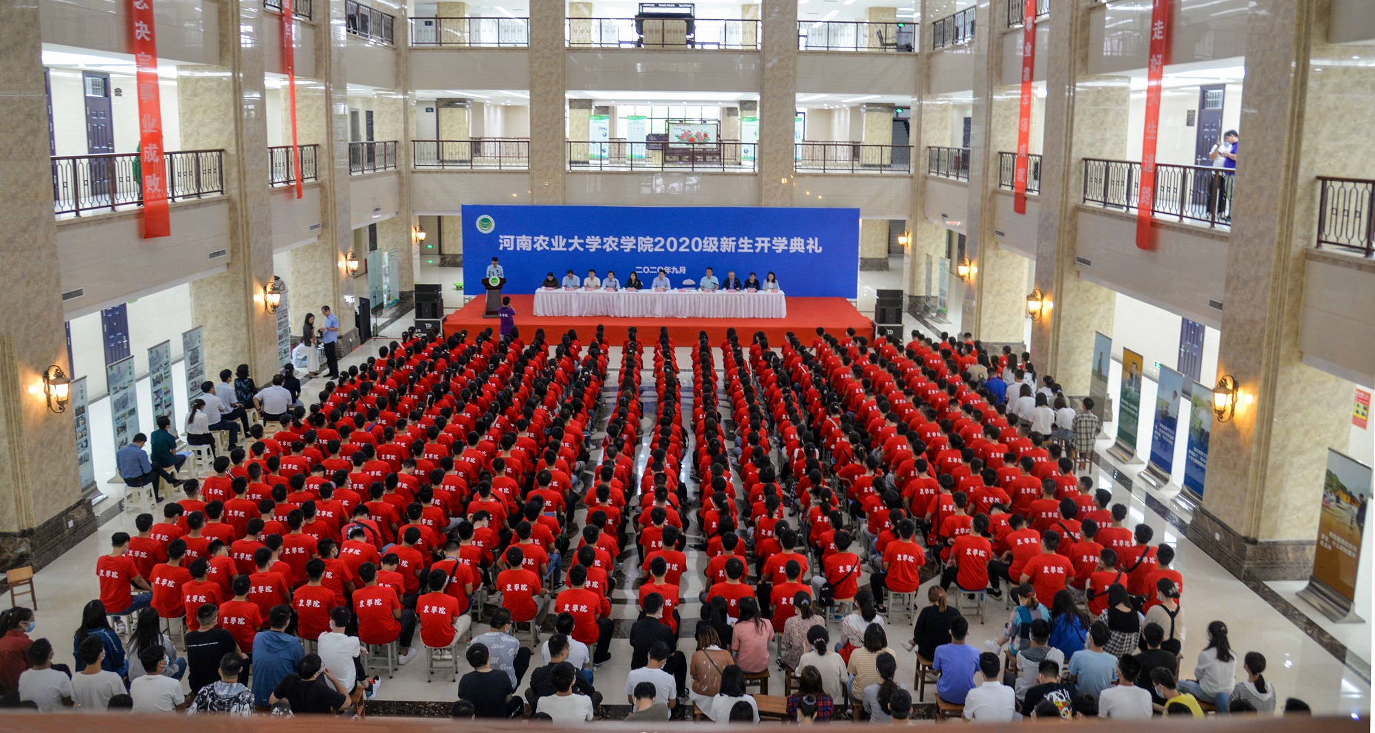 9月21日下午,学院2020级新生开学典礼在龙子湖校区第一实验楼一楼大厅隆重举行。校党委委员、院党委书记郭战伟,院长王道文,院党委副书记王建忠,副院长兼“2011”中心副主任赵全志,各系主任、院办、团委老师及新生班主任出席开学典礼,2020级全体大一新生和研究生新生参加了开典礼。开学典礼由王建忠主持。