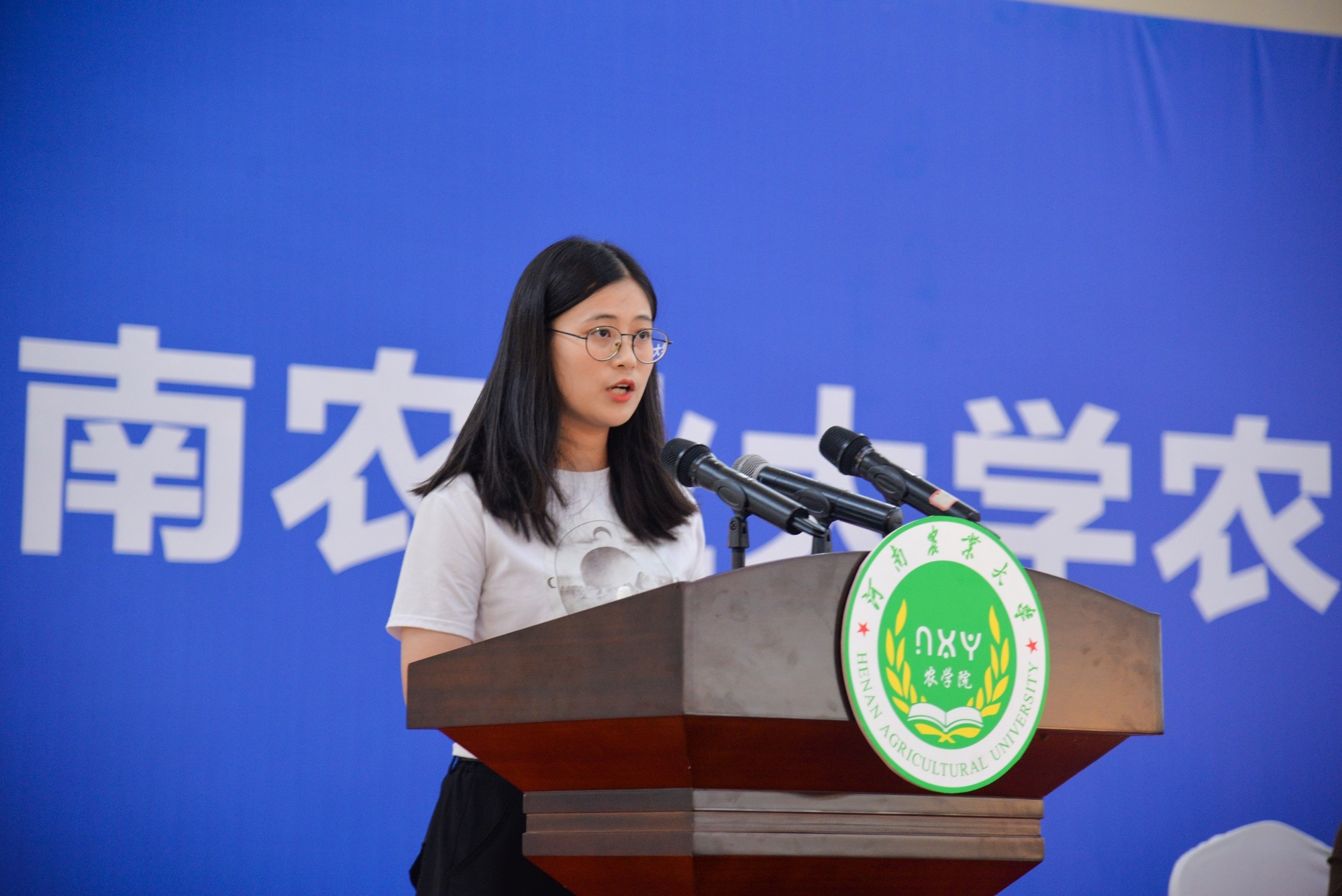 研究生新生代表、2020级作物学专业硕士研究生丁怡宁发言,表达了作为农科学子扛起学农、爱农、强农、兴农的责任和担当。