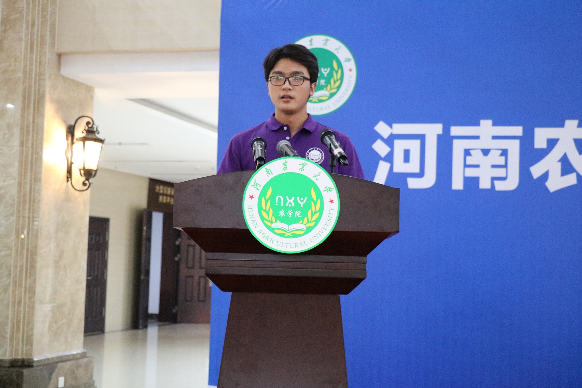 高年级学生代表 、2018级农学2班柳云飞发言,结合自身大学三年的学习体会,向学弟学妹们分享了自己充实和丰富的大学生活。
