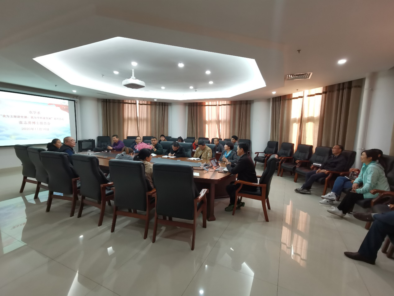 会前,举行了“我为支部讲党课我为学科谋发展”活动,本次由青年教师张志勇博士报告了其博士阶段和当前开展的工作,大家围绕主要内容展开了热烈讨论。