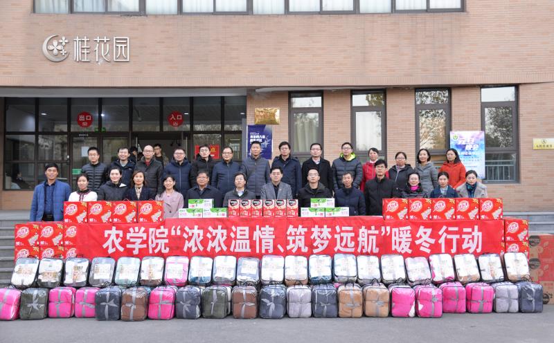 于龙子湖校区桂花楼下举办“浓浓温情 筑梦远航”暖冬活动,学院全体领导班子、班主任老师以及辅导员参加此次活动。
