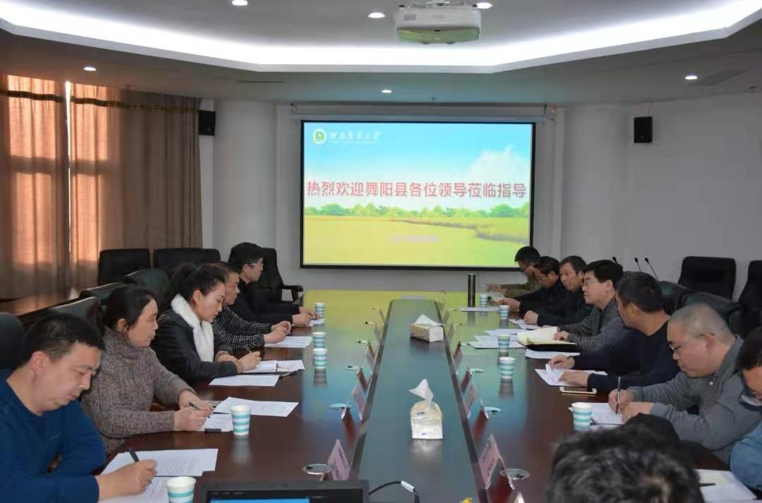 优厚的办学条件和悠久的办学历史,赞赏了学院对河南乃至全国粮食生产做出的贡献,简要介绍了舞阳县的基本情况,舞阳有16万亩高标准良田示范区域,重点发展优质小麦,玉米等传统作物产业;现代特色农业发展对农业科技的要求日益迫切。校县共建农业综合试验站的共建,对舞阳产业发展和乡村振兴带来机遇,必将大大提高舞阳县农业发展的软实力。