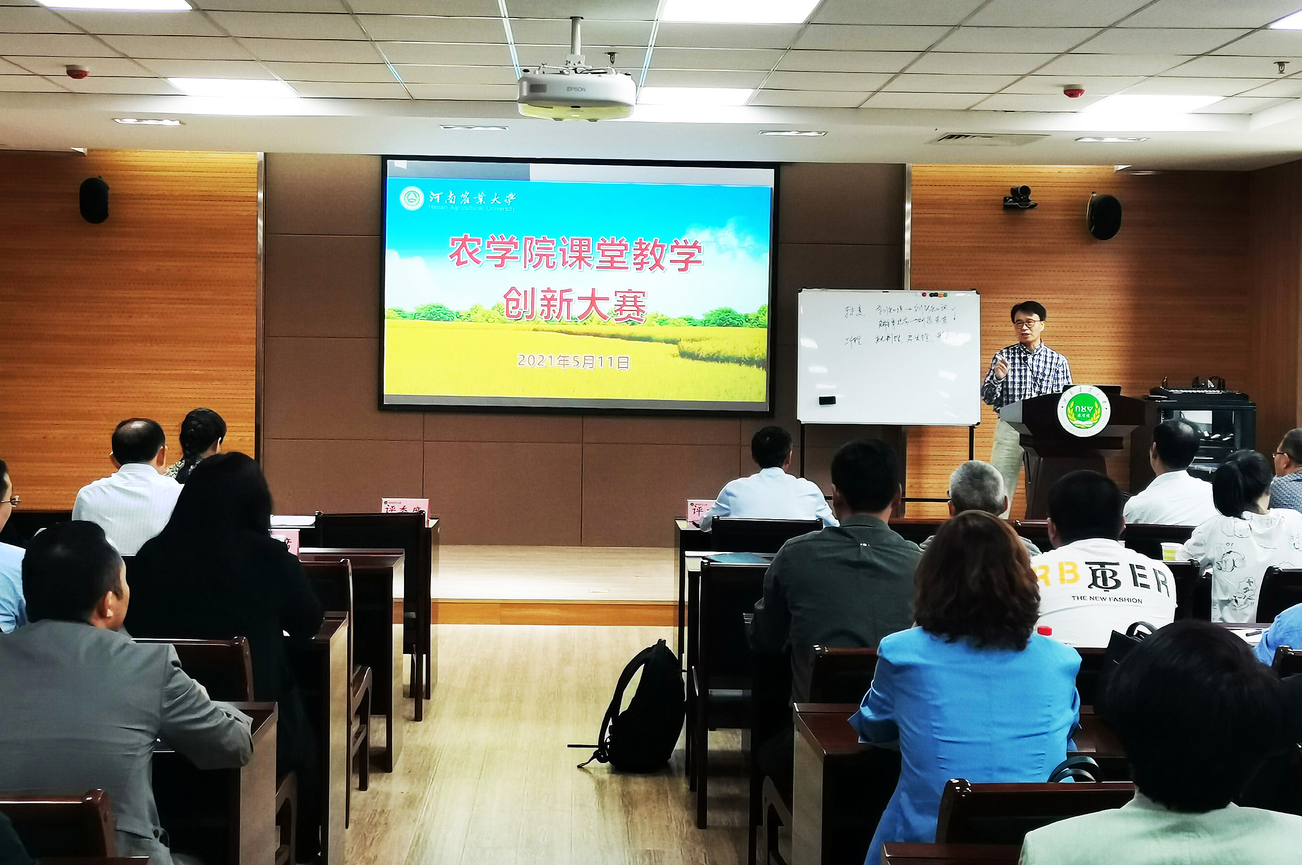 在第一实验楼南321举办了2021年度本科教师课堂教学创新大赛。校教学督导、院教学督导、各系教授代表组成评委团。院长王道文出席本次大赛,新进青年教师观摩比赛。大赛由副院长程西永主持。