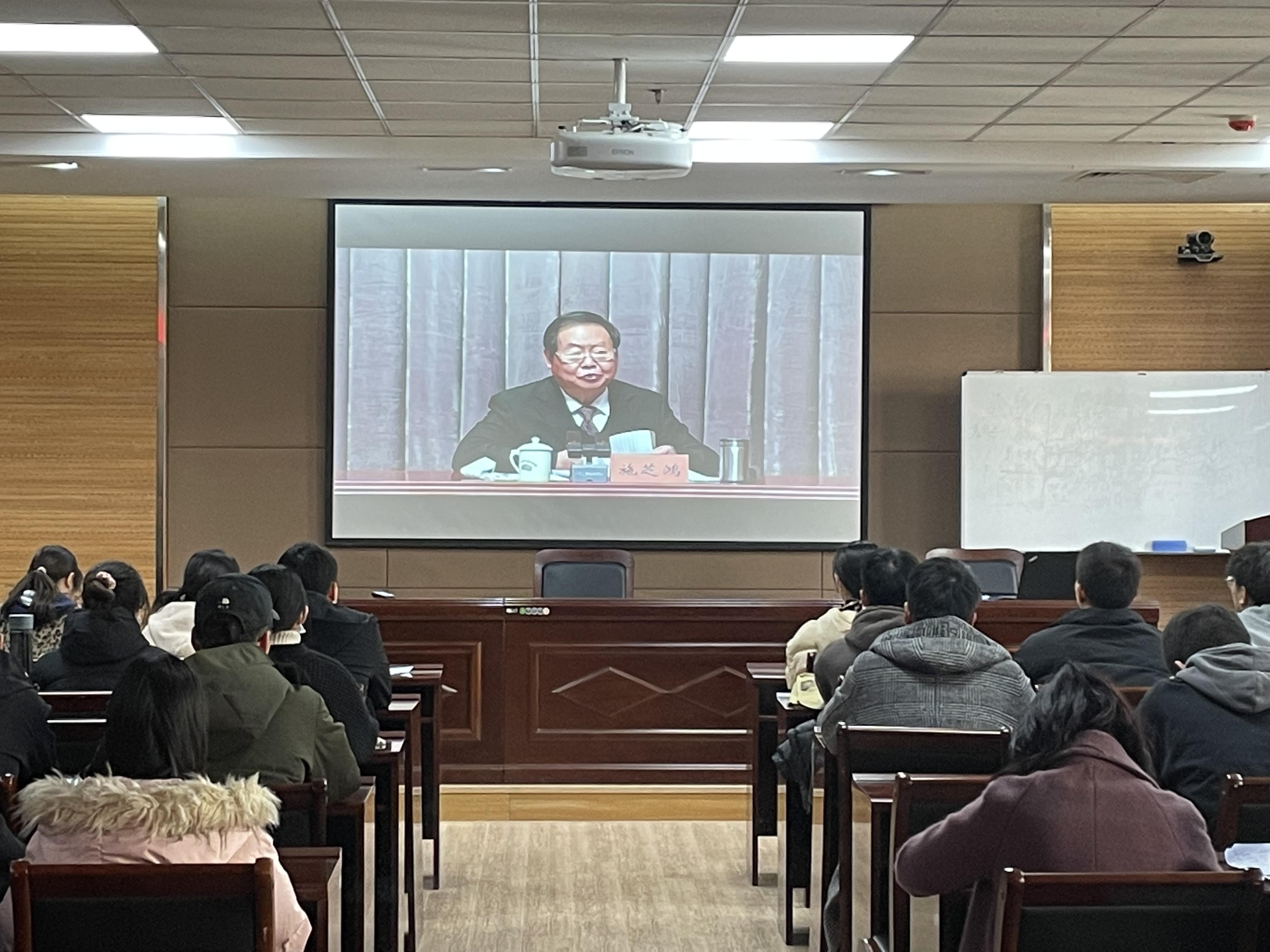 组织研究生、本科生党员和学生干部代表在第一实验楼南321会议室集中观看中央宣讲团在豫宣讲党的十九届六中全会精神的视频。
