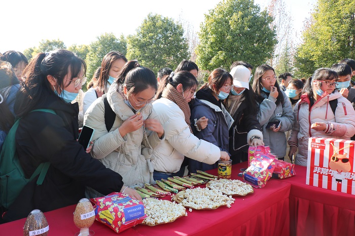 玉米创新团队培育的优质爆裂玉米品种做成的甜香苞米花,有水稻创新团队培育的优质稻米“方欣一号”煮成的香喷喷的大米饭,有花生创新团队培育的优质花生“农大黑7572”做成的“五彩”花生米,广大师生满脸笑容,赞不绝口。