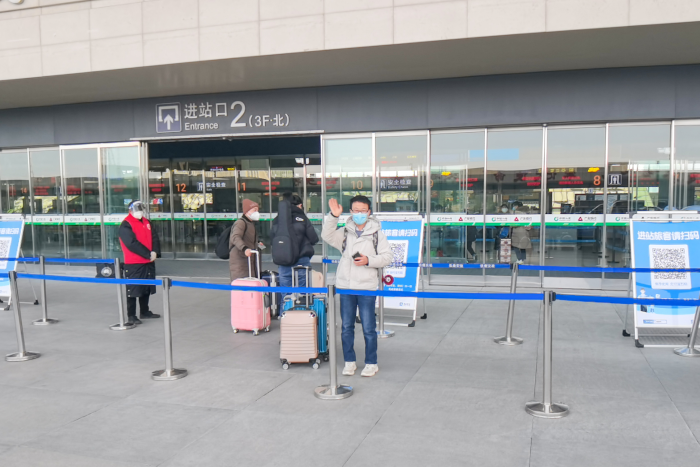 辅导员老师,对第一批即将回家的学生们做着最后叮嘱。