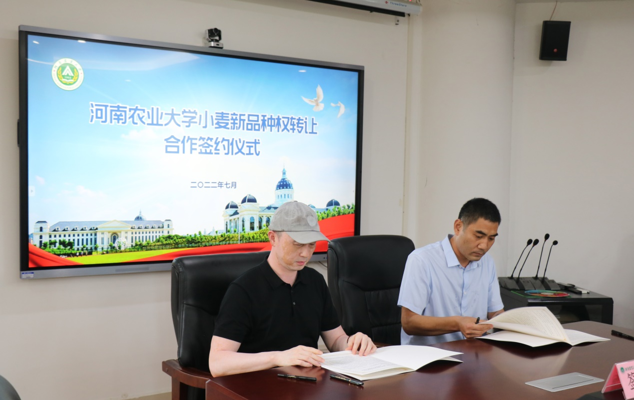 龙子湖校区第一实验大楼南201会议室举行。河南兴周农业发展有限公司董事长王五、河南省金博农种业有限公司董事长谭松根、河南平安种业有限公司董事长吕平安参加签约仪式,校党委委员、a片直播