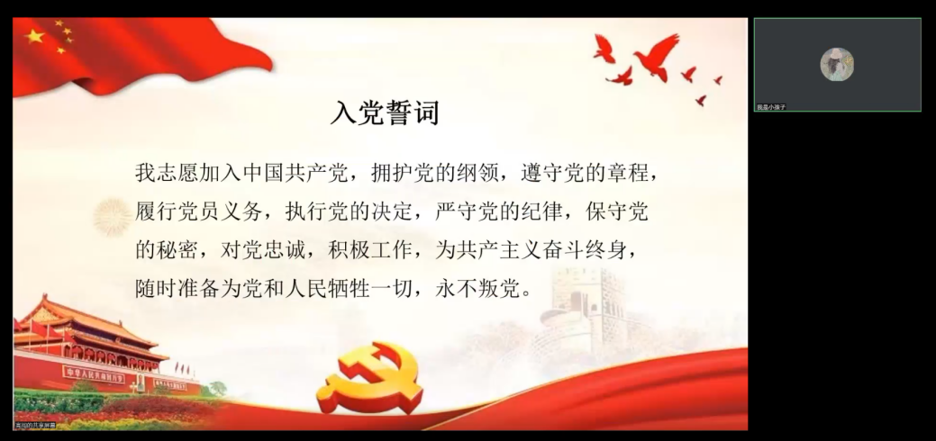 “我志愿加入中国共产党……对党忠诚,积极为党工作,为共产主义奋斗终身……”一句句坚定响亮的宣誓声在每个人的心中响起。大家面对鲜红的党旗,神情庄重,重温我们党走过的光辉历程,重温入党誓词,坚守初心使命。回忆令人激动的入党时刻,再次体验激情的青春,庄严向党承诺,表达了为党的事业奋斗终身的决心和愿望。