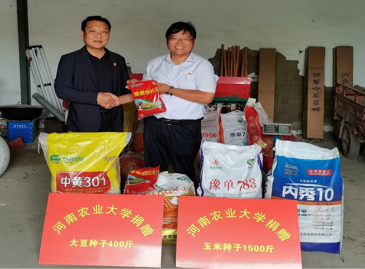 在国营民权农场举行赠送仪式,向农场赠送适合玉米大豆带状复合种植的高产多抗优质玉米和大豆新品种,为商丘市复合种植提供品种与科技支撑。随后,殷贵鸿一行到a片直播