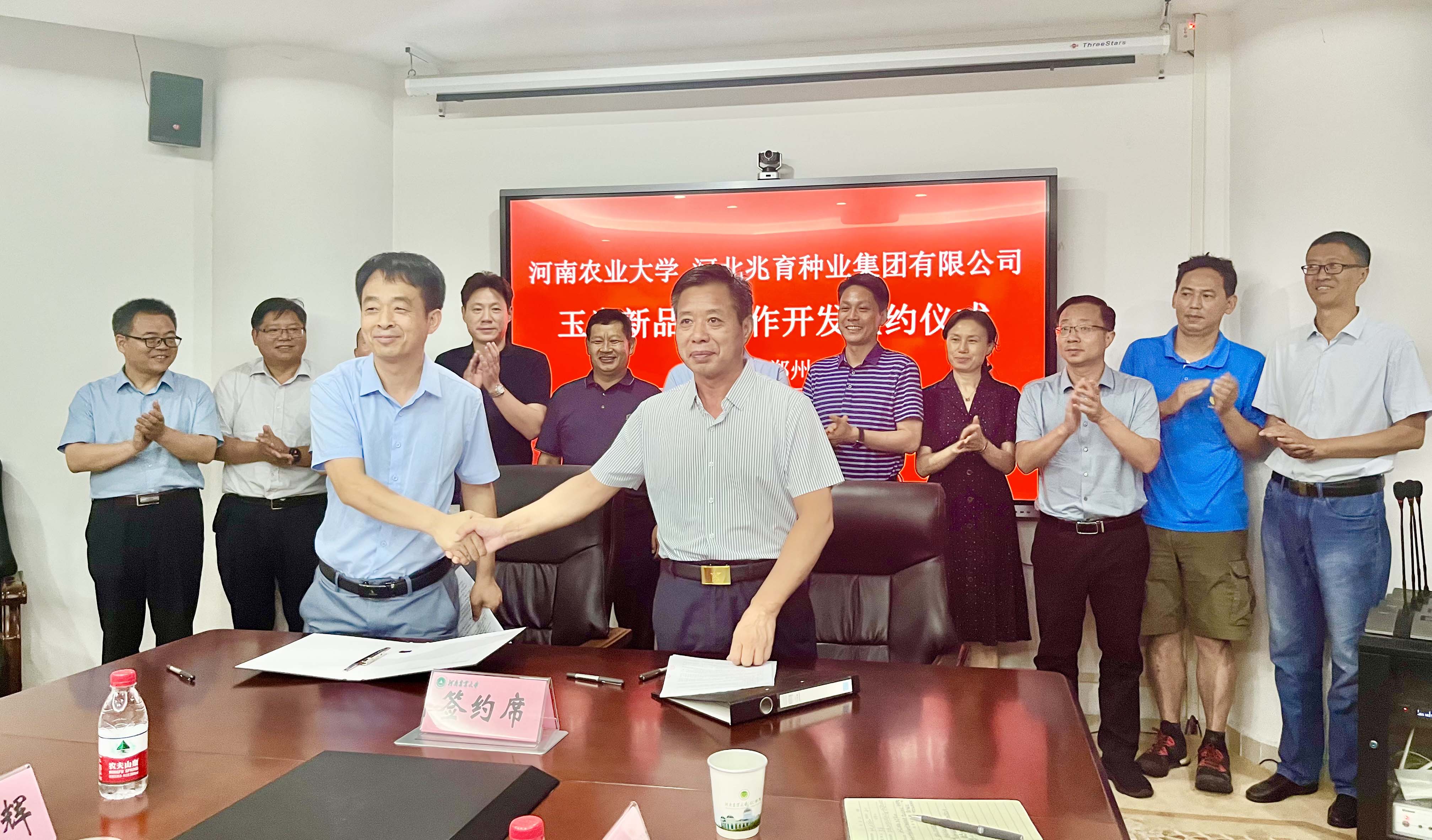 玉米新品种YD2313合作开发签约仪式在第一实验大楼举行。河北兆育种业集团有限公司副总裁王业国、贺东刚一行,a片直播