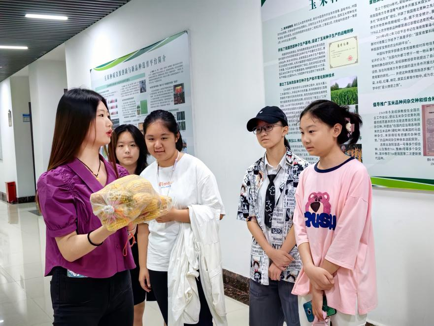 研究生党支部在第一实验楼开展暑期“知农学农”主题党日活动,带领我校附属中学学生参观实验室,了解作物学科研成果。