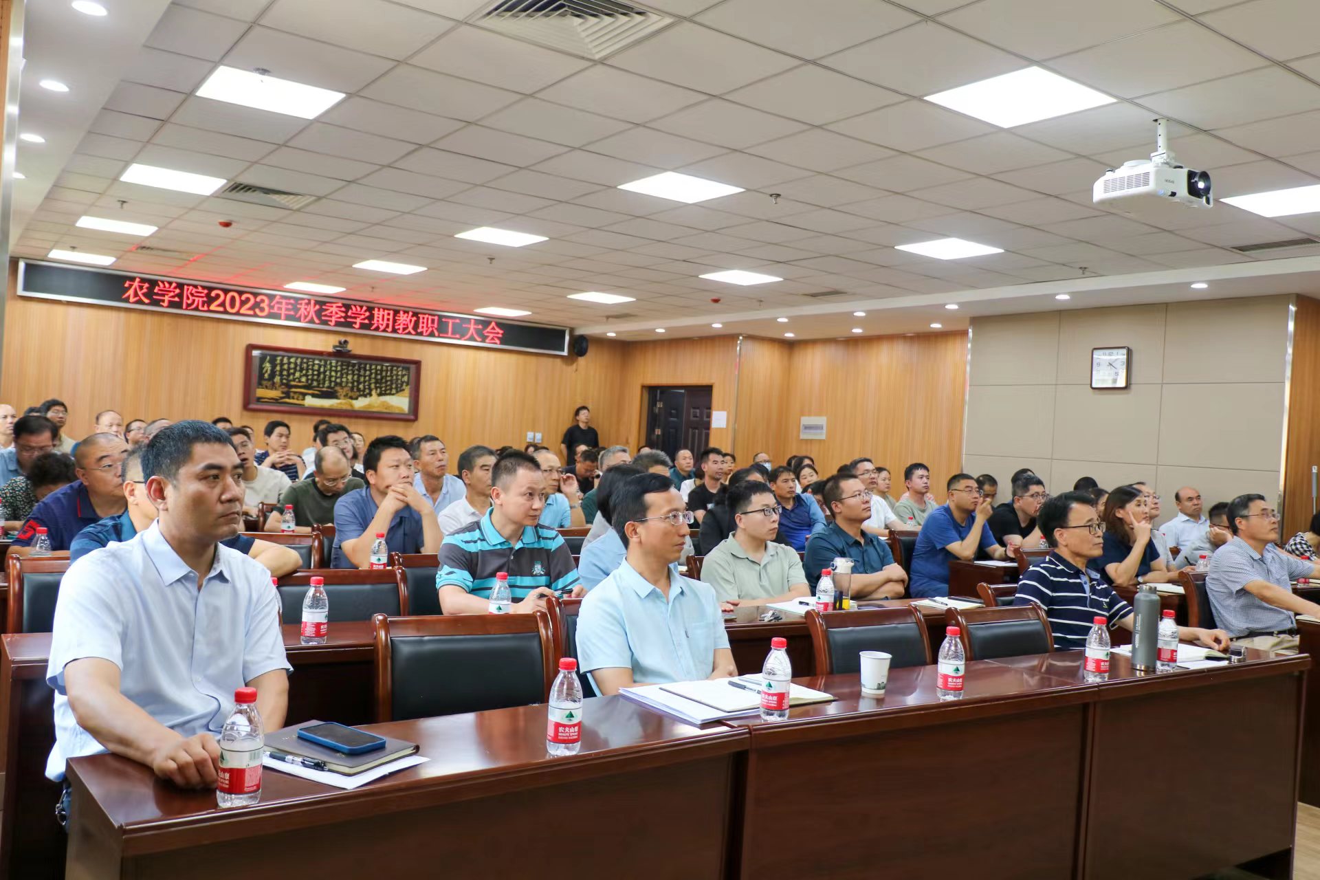 在龙子湖校区第一实验楼南321召开教职工大会,会议总结了a片直播