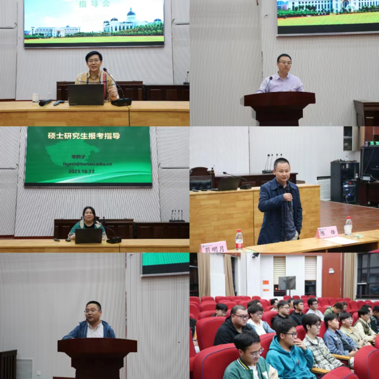 近年来在研究领域取得的相关成就及报考本校的优势,鼓励程度匹配的同学积极报考本校。李鸽子强调学生们要明确考研的目的,注重心态调整,实事求是,刻苦学习的同时也要注意提高身体素质。王桂凤从现实出发谈及考研的重要性,坚定学生们的考研决心与信心。他希望学生们能够了解研究生培养机制,做好人生规划。张雪海结合当前的考研形势从不同院校的优势特点、考研常见的误区、考研信息获取、考研复习准备等方面对考研流程做了详细梳理与介绍。指导会上,考研学生积极提问,同老师们深入交流,指导老师耐心为学生解答疑惑,现场氛围轻松活跃。