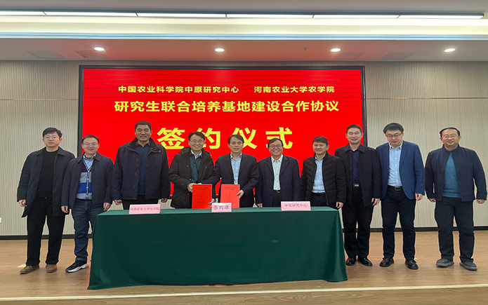 签署研究生联合培养基地建设合作协议,中国农科院研究生院党委书记贾广东,研究生院党委委员、院长办公室主任陈黎明,中原研究中心主任、中原管理分院院长顿宝庆,a片直播
