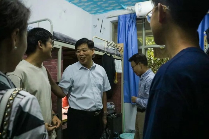 党委书记贾磊、院长王道文、党委副书记方芳、副院长殷贵鸿、副院长李浩川及团委负责老师到新生宿舍看望,了解新生宿舍环境,询问新生到校感受等。王道文关切生活环境与成长规划与学子深入交流关心地询问新生是否面临困难。贾磊激励新生奋发向前努力学习农学知识,树立远大理想,投身“三农”事业。