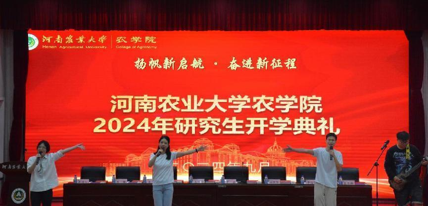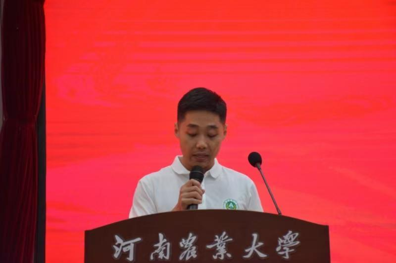 2024级研究生新生代表杨凡力同学发言。他深情回忆了在农大四年本科学习时光的成长经历和所见所悟,特别是对农学专业的认识有了更加清晰的认识和了解,他说,我喜欢农学,很幸运,我选择了农学,成为了万千农学人的一份子。作为新时代的农学人,他表示,要继承先辈的意志,肩负起农业发展的责任,为保障国家粮食安全而努力。