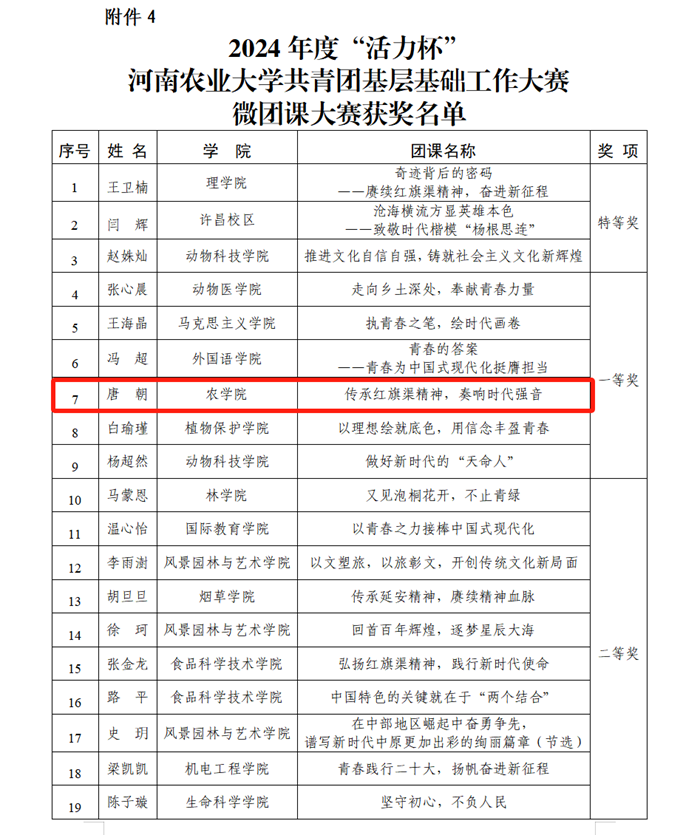 唐朝老师代表团课《传承红旗渠精神,奏响时代强音》荣获一等奖;实践育人工作项目大赛中,a片直播