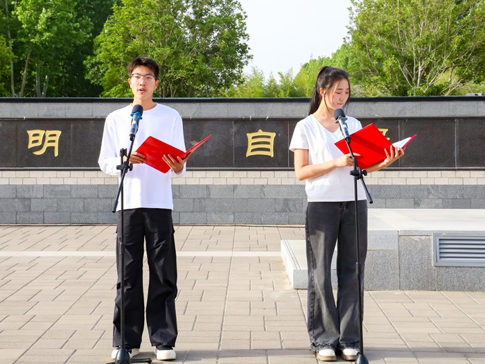 青禾艺术团带来国旗下朗诵《学风浩荡勤修志,诚信考试守初心》,用激昂的声音传递着对优良学风的追求。