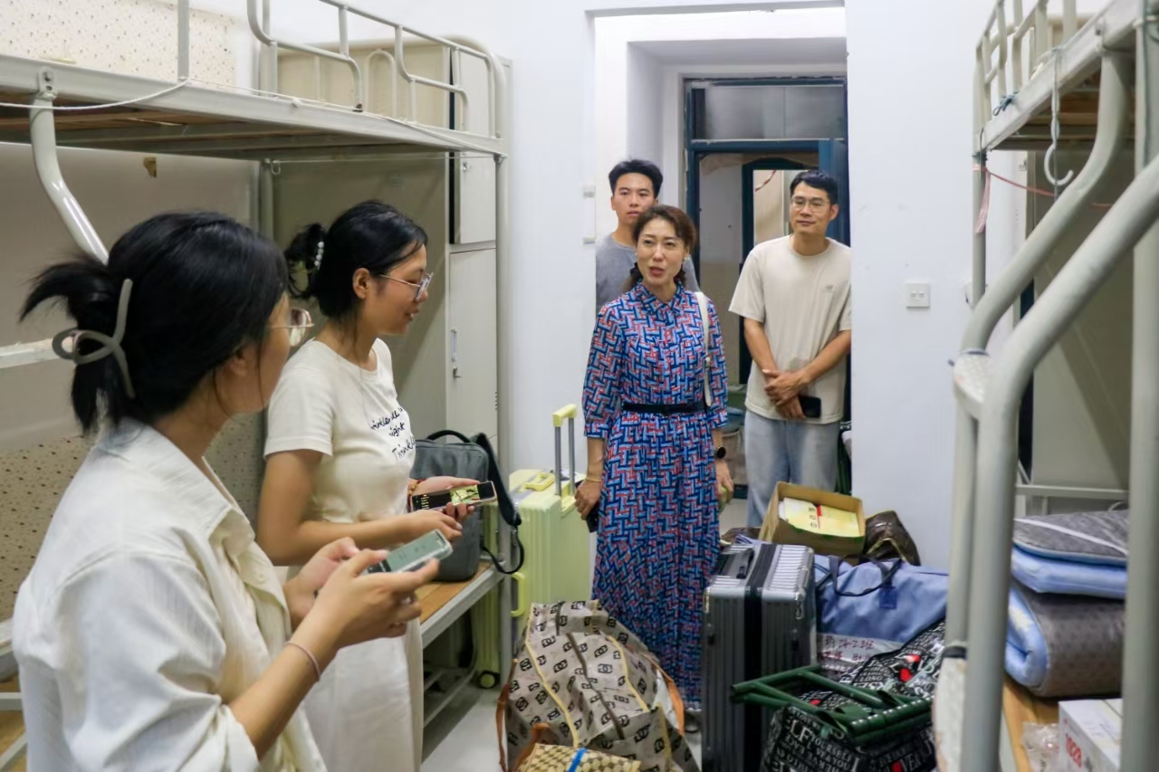 院党委副书记方芳带领团委老师走访学生宿舍,巡查搬迁学生新宿舍相关情况,关切询问学生需求,并提醒学生搬迁工作消耗较大体力,要注意保障饮食和休息。