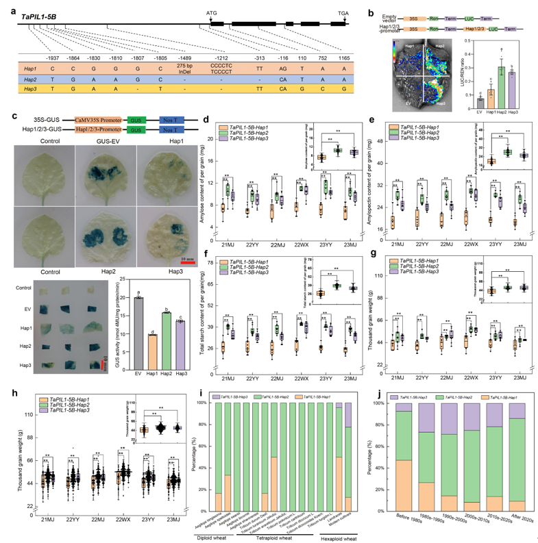 TaGBSSI-4A表达,调控了小麦籽粒淀粉的合成;TaPIL1-5B与-5D形成二聚体,增强后者转录激活能力;